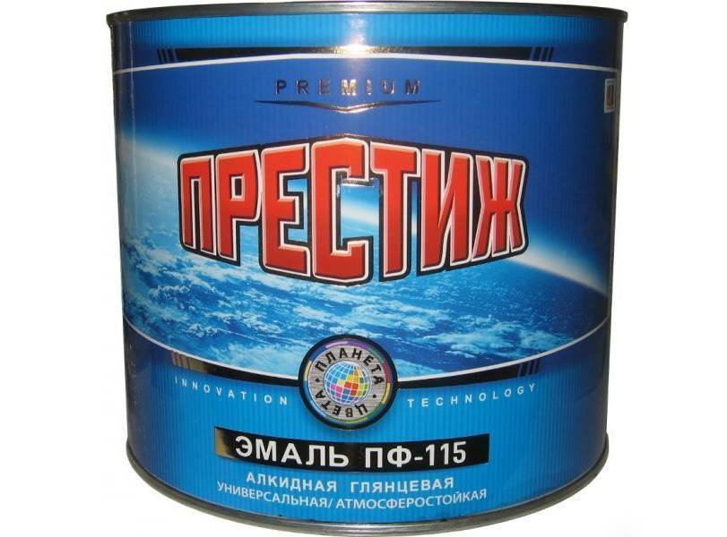 Краска Prestige с обозначением ПФ-115, подразумевает определенные химические составные компоненты, также помогает понять область предназначения состава. Обозначение букв ПФ — наличие в составе пентафталевого лака, средство может использоваться для обработки поверхностей внутри и снаружи здания. Также совмести с разными типами оснований. Цифирные символы 115 можно расшифровать так: единица это использование на улице для регионов с разным климатом; 15 подразумевается химическая рецептура, определённая ГОСТом.