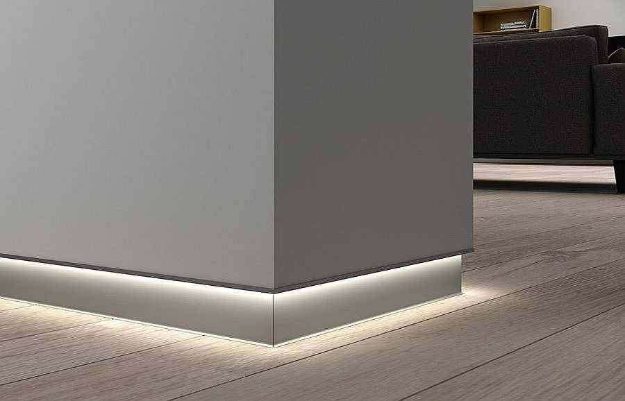Что касается функций, то в первую очередь этот элемент является декоративным. Также он является защитой стыка между стеной, напольным покрытием или столешницей. Кроме того, плинтус может обеспечить осуществление скрытой проводки.