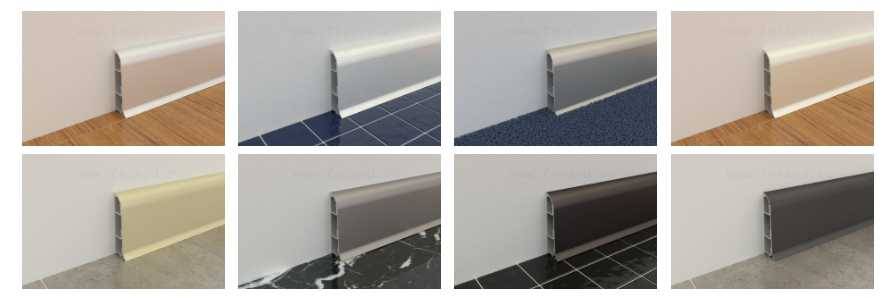 Такие плинтуса прочные и влагоустойчивые. ПВХ плинтусы имеют недостаток — они “боятся” воздействия высоких температур, что не свойственно алюминию. К тому-же, он является электроизоляционным материалом. Стоимость в незначительной степени превышает выставленную на пластиковые изделия.