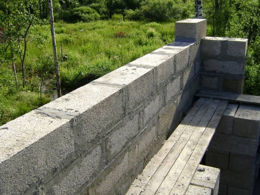 Важно правильно рассчитать нагрузки и распределить их на стены, толщина которых должна быть достаточной для обеспечения надежности и устойчивости крыши. Проще всего по окончании укладки последнего ряда блоков устроить армированную стяжку из цементного раствора