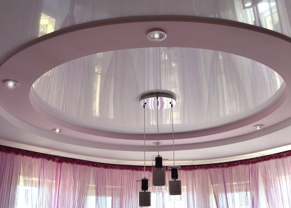 Ее создают за счёт сделанной по периметру конструкции из гипсокартона, в центре этой конструкции создают круглое или овальное отверстие, которое закрывают натяжным полотном.