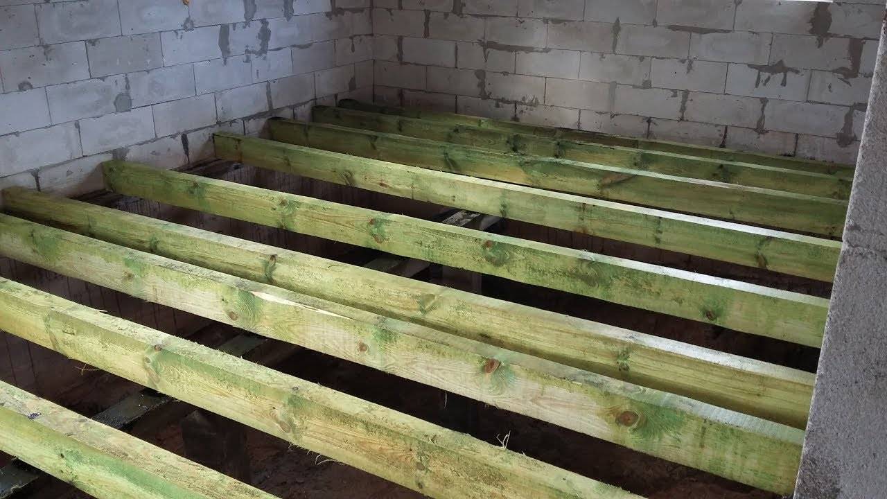 Для каркаса используют широкую доску и обвязку из бруса. Перед сборкой их обрабатывают защитными составами, препятствующими гниению древесины и размножению плесени.