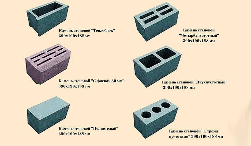 Виды строительных блоков блоков