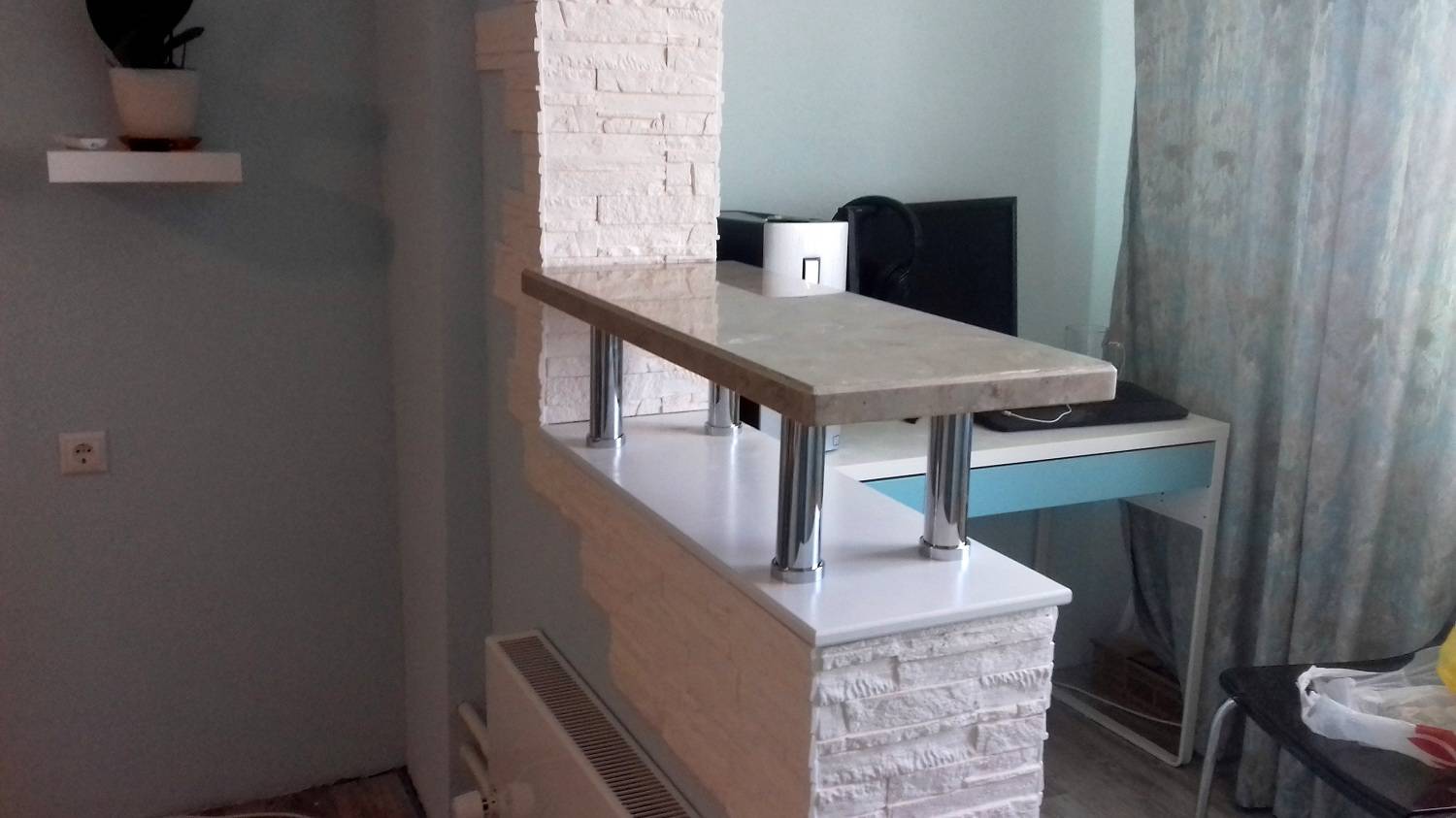 Перед началом самостоятельной перепланировки обязательно сделайте проект, так будет проще подобрать материалы, рассчитать количество и тип. Кроме того, проект поможет определиться с размером барной стойки и дополнительных систем хранения вокруг нее.