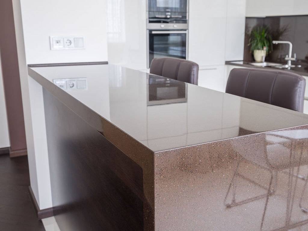Сравнительно новый в производстве столешниц материал. Высококачественный аналог натурального камня. Не уступает по прочности и долговечности, но стоит дешевле. Дополнительные преимущества: