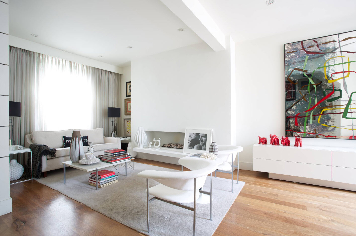 Декораторы любят сотворить в интерьере что-нибудь эдакое, необычное, привлекающее внимание и даже шокирующее. К примеру, если владельцы не готовы при создании нового стиля гостиной сменить мебель в ней, то профессионалы, не задумываясь, легким движением руки сами преобразят её в белую