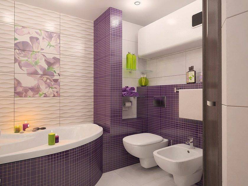 Дизайн ванной с мозаикой и полноразмерной плиткой
