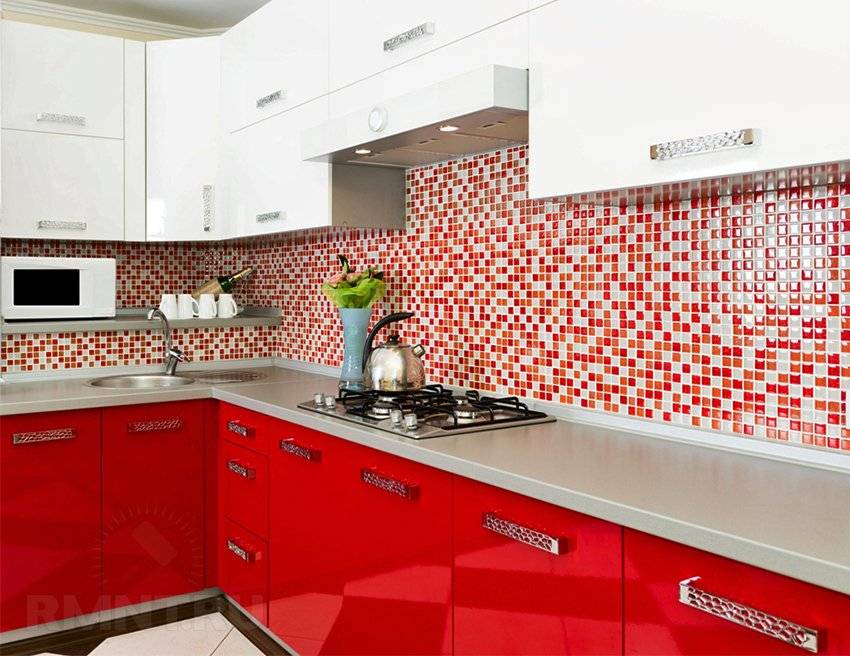 Использование мозаики для небольших участков экономит денежные средства. Облицовка мозаикой на кухне позволит сохранить стены в области мойки, плиты от жировых брызг и образования различных пятен. Данный вид отделки отлично переносит чистку даже с агрессивными чистящими средствами, а плитка возле плиты не будет деформироваться от нагревания.