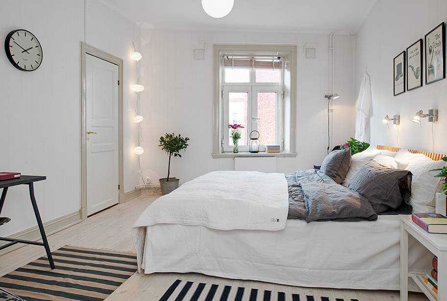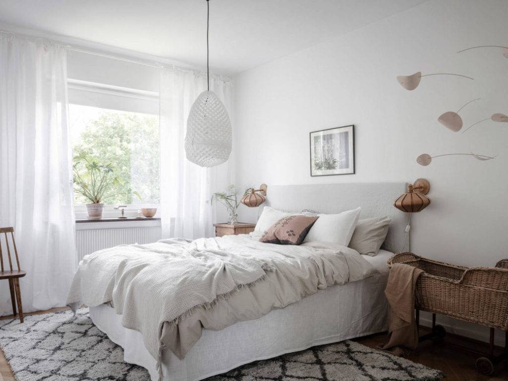 Белая спальня в скандинавском стиле – простота и натуральные ткани