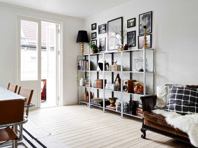 В ИКЕА есть комбинированные варианты — с открытым верхом и закрытым низом. В закрытую часть можно убрать журналы, книги, а на полках оставить самые красивые экземпляры, фоторамки и предметы декора.