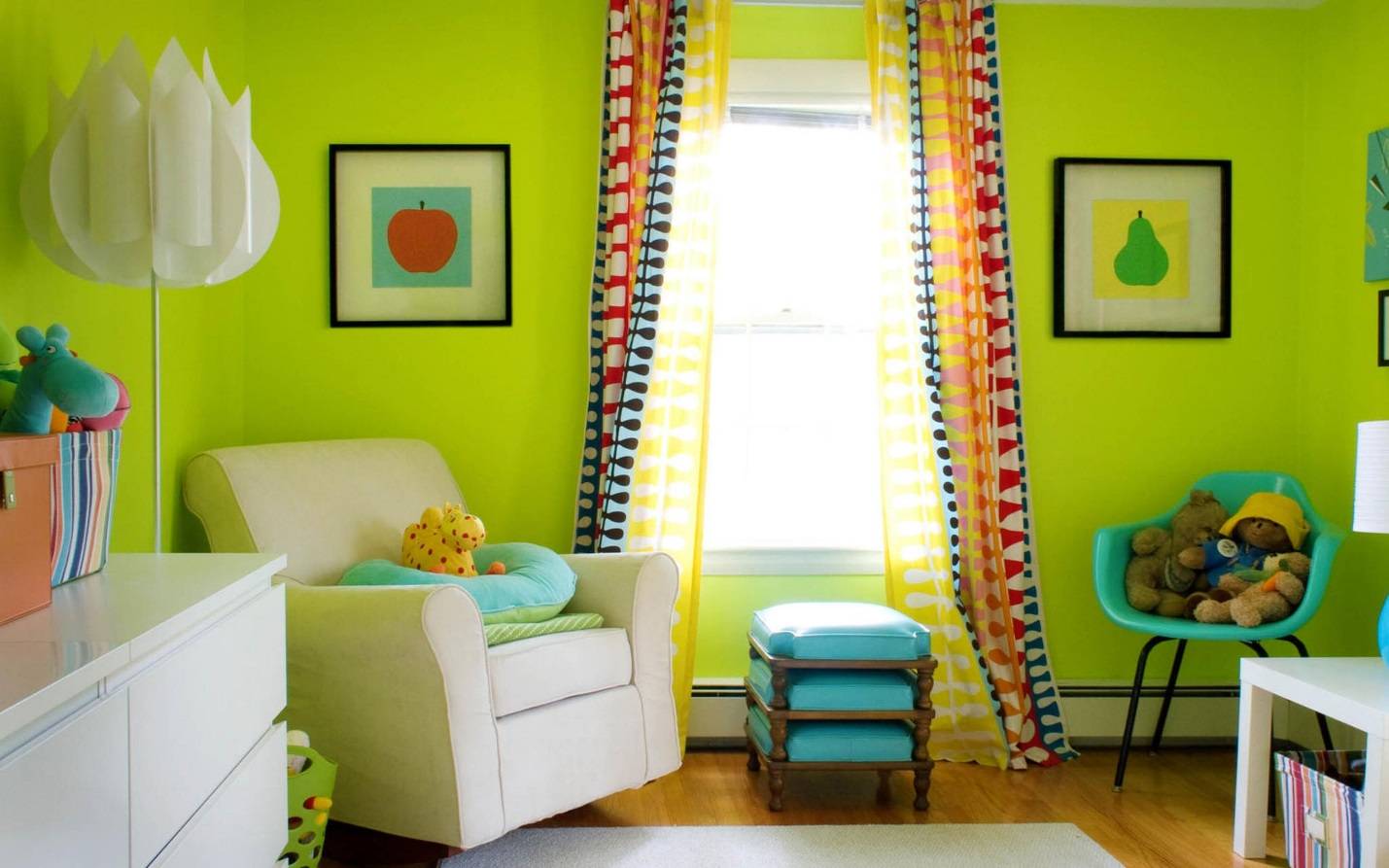 Но от ярких тонов лучше отказаться: они провоцируют гиперактивность и отвлекают внимание, поэтому подойдут только для отдельных деталей. Приглушенные, бледные тона тоже не подходят в детскую, заставляя ее выглядеть слишком скучной