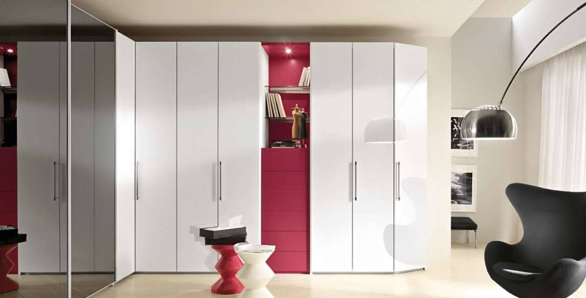 Самым лучшим решением для небольшой квартиры считается г образный шкаф – белый цвет добавит ему изящества, а внутреннее пространство позволит вместить большое количество вещей.