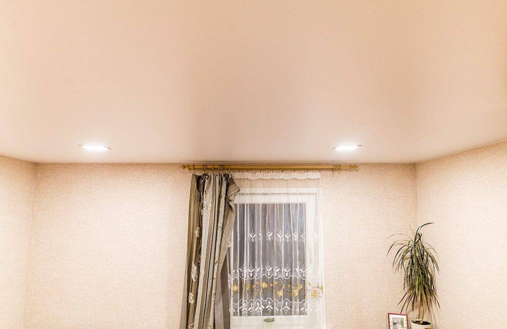 У матовых полотнищ, в отличие от глянцевых, нет зеркального эффекта. Потолок из сатина по отражательной способности находится между матовым и глянцевым.