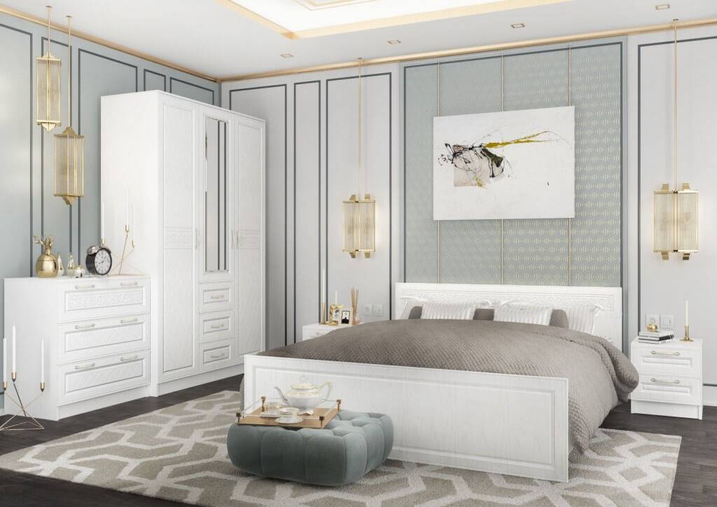 Независимо от основного цвета интерьера белый цвет мебели будет уместен. Выбирая стиль спальни нужно следовать правилам сочетания цветов и оформлять всю квартиру по принципу плавных переходов. Уход за белыми поверхностями не требует особых навыков, а времени требуется так же, как и на любую другую мебель.