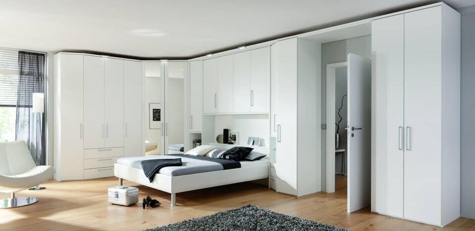 - поверхность белого шкафа для спальни – глянцевые изделия требуют больше ухода;