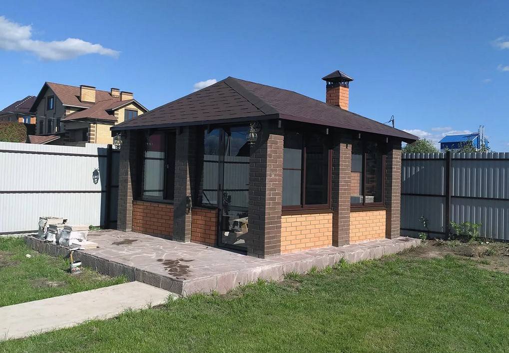 Кирпичные беседки с мангалом, фото полузакрытой конструкции