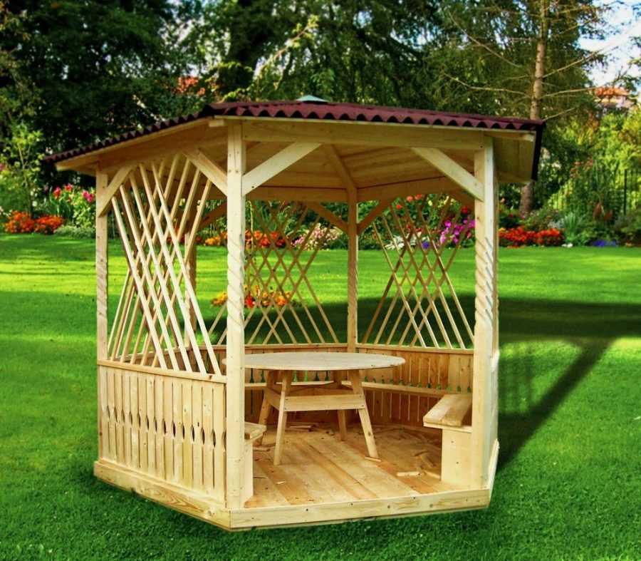 беседку. Ведь натуральные оттенки древесины уже сами по себе являются украшение