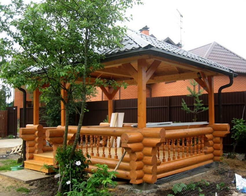 - Вариативность конструкции – из бревен можно собрать любые по форме и размеру беседки.