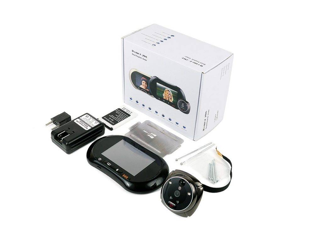 Дисплей – 3,5 дюйма, LCD, с сенсорным управлением и разрешением 480 на 320. Есть поддержка карт памяти до 32 гигабайт, встроенного аккумулятора на 1500 mAh хватает примерно на 2 месяца работы в режиме ожидания. Имеются датчик движения, ночное видение с инфракрасной подсветкой. Угол обзора – 165 градусов, по факту – порядка 120 градусов. Ключевое отличие данной модели – наличие SMS и MMS-информирования, но для этого потребуется установить SIM-карту.