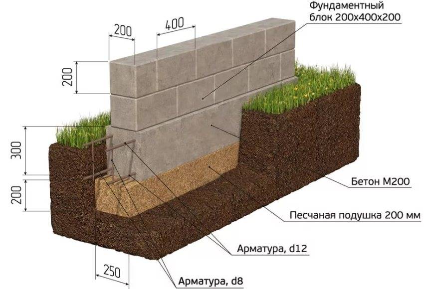 Важное значение имеют габариты фундаментных блоков. Их учитывают вместе с классом прочности и видом используемого бетона