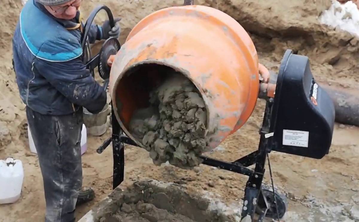 Оптимальный вариант – замесить одну часть цемента, четыре части строительного песка и не забыть добавить полчасти воды. Далее в бетономешалку заливается вода, после этого засыпается цемент, затем – песок. Ручной способ несколько проще: цемент и песок смешиваются до однородной массы без комков, добавляется вода.