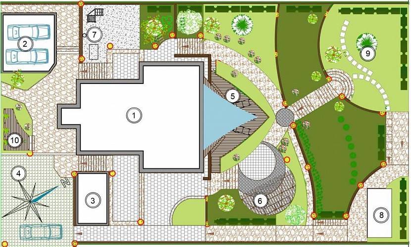 Схематичное расположение функциональных зон и элементов ландшафтного дизайнаИсточник sveklon.ru