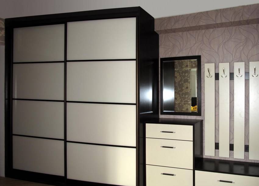 Среди наиболее популярной модели, которую используют для оформления данного участка, является шкаф-купе. Его конструкция закрывает одну стену, отлично подойдет именно для небольших помещений.