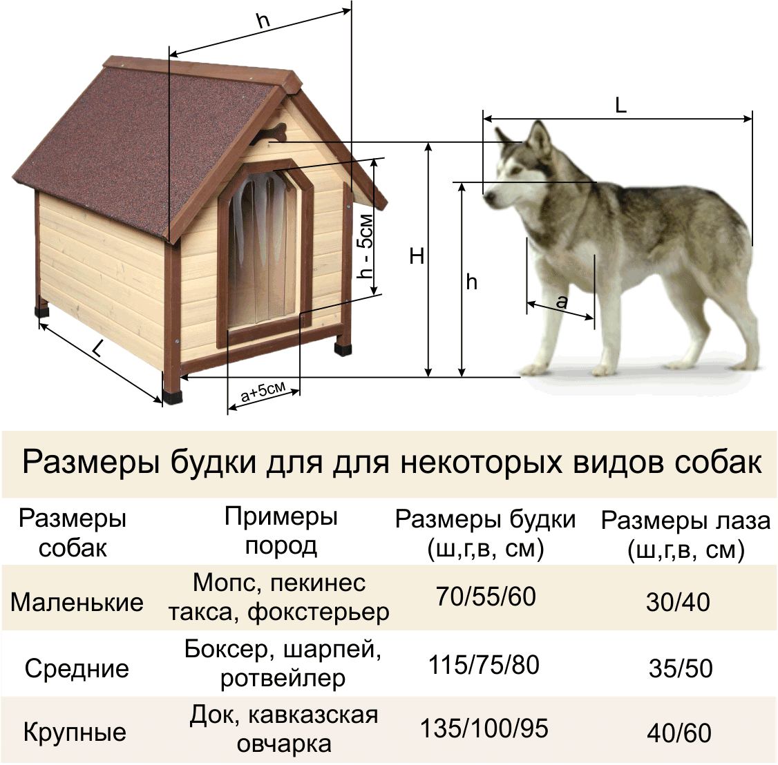 - Длина будки — это расстояние от кончика носа до середины хвоста собаки или два роста собаки в холке плюс 30 сантиметров; этого достаточно, чтобы вытянуться во весь рост;