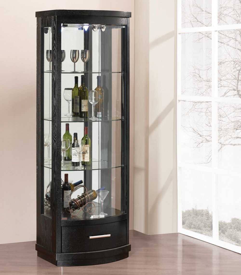 Внутри это хорошо знакомая нескольким поколениям стенка. Современная модификация опознается по округлому верху или форме многогранника. Состоит из нескольких сегментов-шкафов с открытыми полками и стеклянными дверцами, открывающимися независимо друг от друга, но объединенными в единое целое. Обычно здесь хранят книги или посуду.