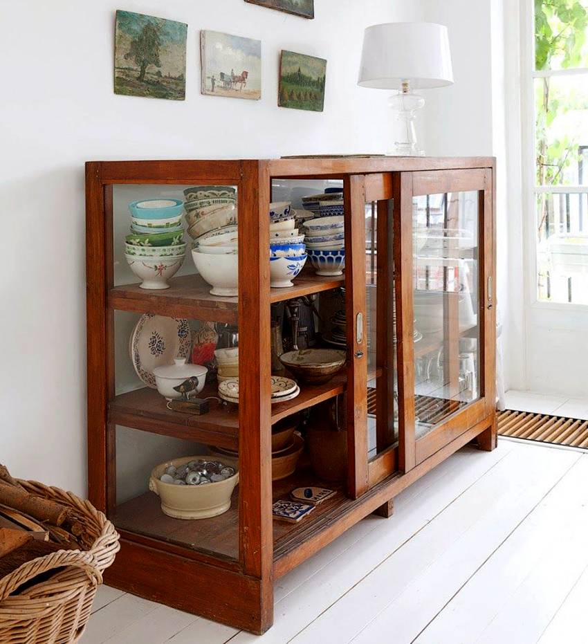 Мебель исключительно для посуды с полочками из дерева или стекла. Выбор определяется ее тяжестью: от фужеров до супницы.