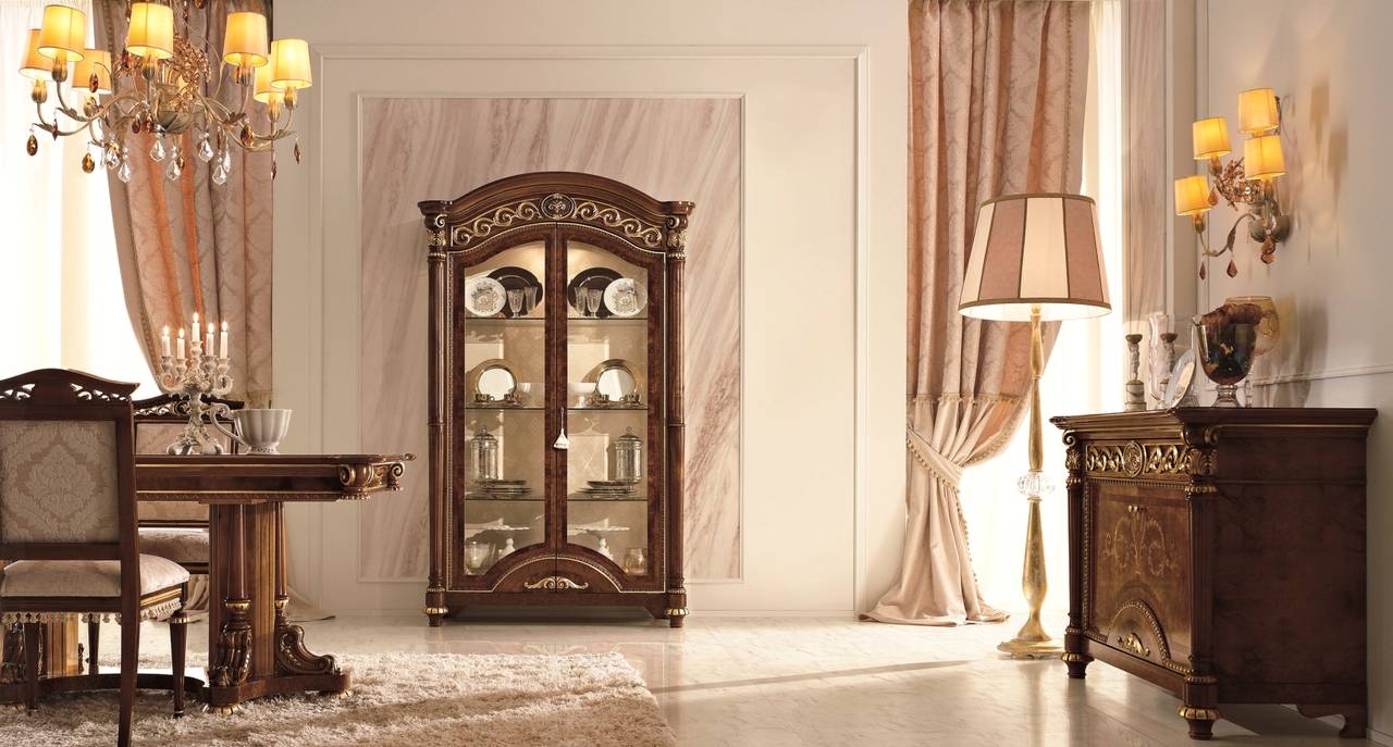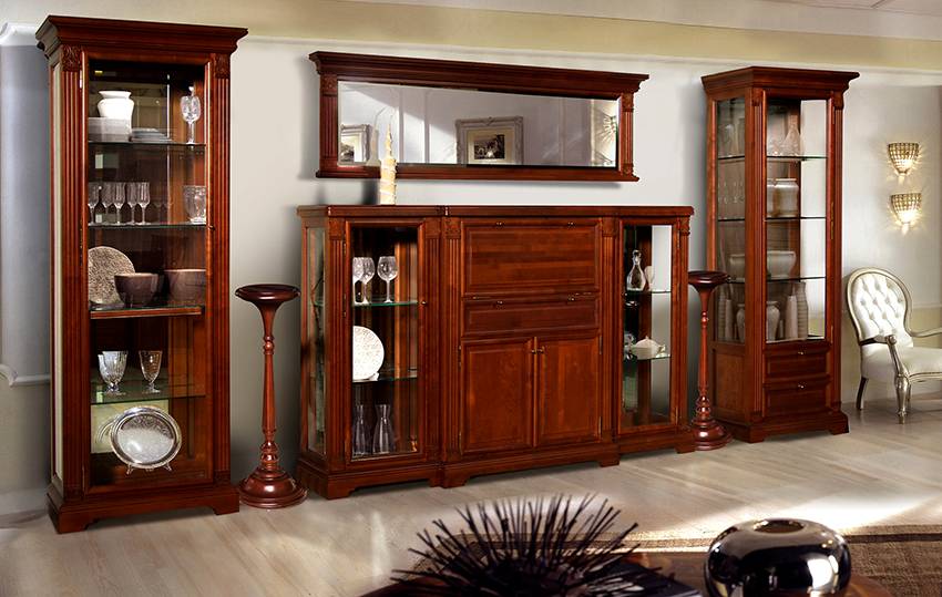 - Классический стиль. Данные изделия представлены в виде крупногабаритных сервантов, которые иногда искусственно состаривают.