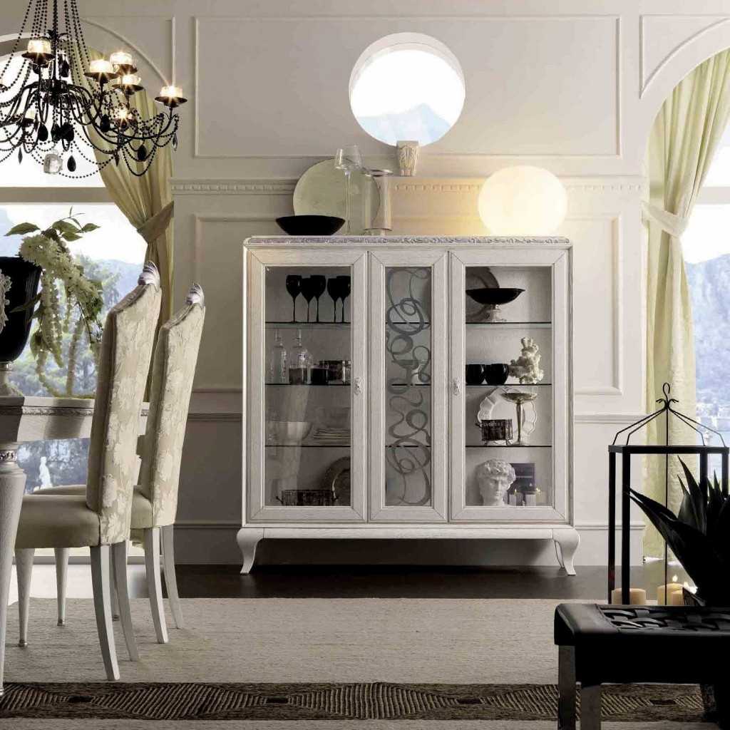 Если сервант был изготовлен из настоящей древесины, конструкция выглядит дорого и способна прослужить долгое время. Но подобный материал требует специального ухода. Одной из главных особенностей классического серванта считаются стеклянные дверцы, на которые нанесены прекрасные узоры или же фигурки, а некоторые модели, выполненные в таком стиле, оснащены подсветкой.