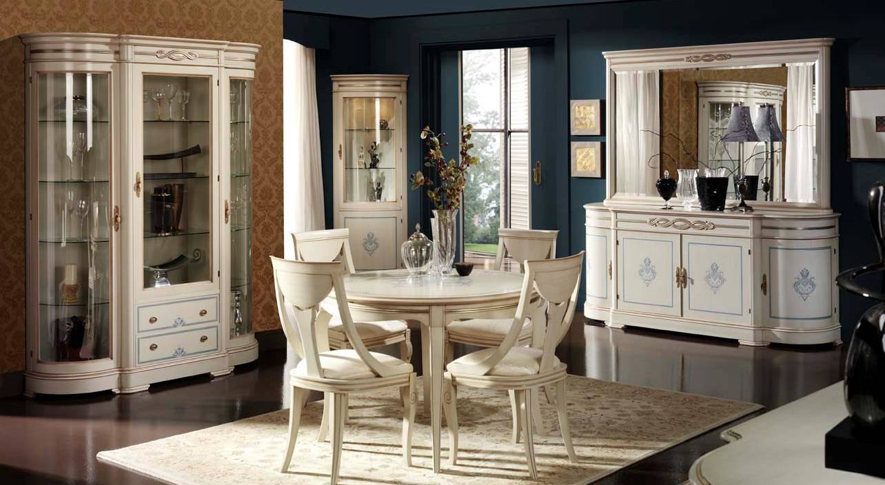 Буфет-витрину обычно располагают по центру гостиной или рядом с обеденной группой. Особенно такая расстановка мебели актуальна для больших просторных домов. Производители мебели специально выпускают целые серии, которые обычно включают в себя обеденную группу, два буфета-витрины, комод с зеркалом.