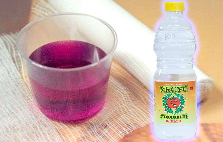 - Развести марганец в уксусе (70%) в такой концентрации, чтобы цвет был слегка розовым.
