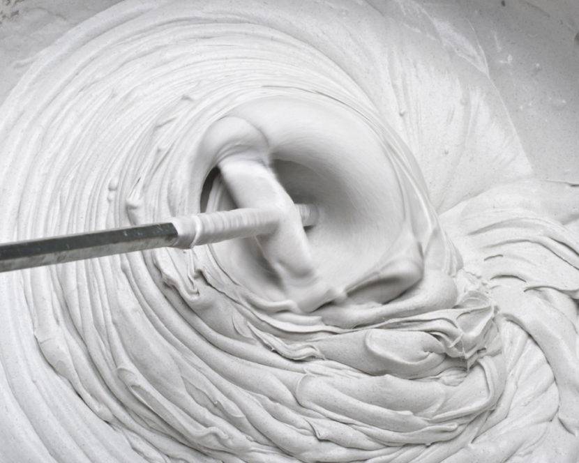 В зависимости от состава, молоко может иметь разную консистенцию и вид – от жидкого раствора серого цвета до состояния взвеси или теста. Перемешивать раствор лучше всего с использованием специальной насадки для электрической дрели либо перфоратора (это поможет избежать риска появления комков). Для увеличения пластичности смеси добавляют гашеную известь. Если молочко замешивается для проливки, оно по консистенции должно напоминать жидкое стекло.