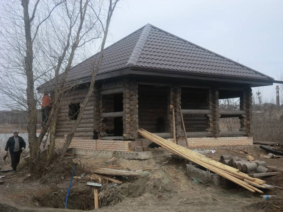 - Монтаж. Собирается каркас стропильной системы. Укладываются подстропильные брусья (с контролем строительным уровнем), опорные брусья; дополнительные соединения создаются при помощи стропил.