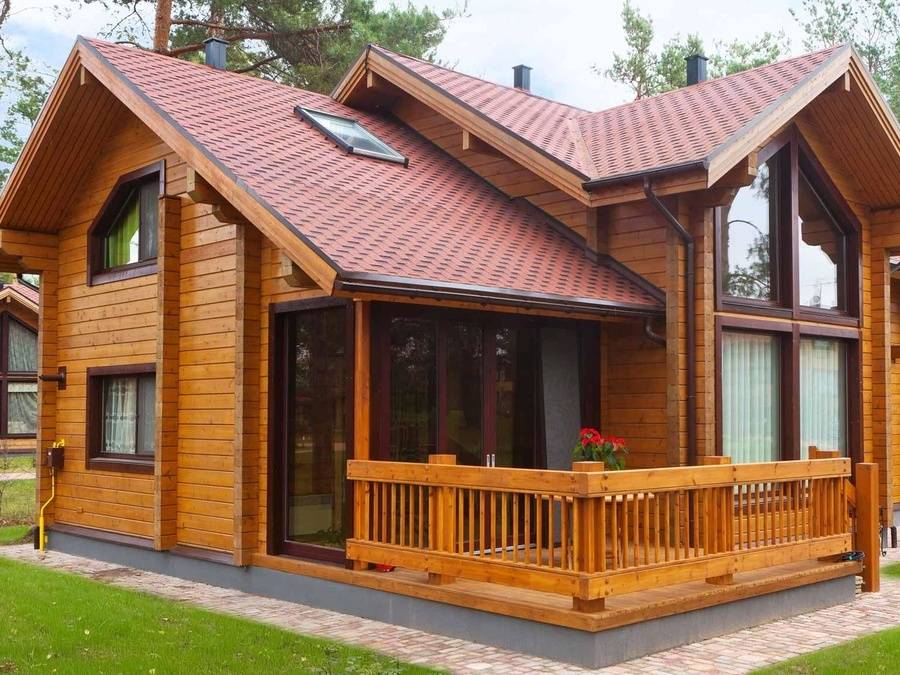 Кровлю можно выполнять из профильных листов, черепицы и других материалов на усмотрение хозяина. Интерьер и экстерьер для деревянного дома делать не обязательно, поэтому здесь можно сэкономить.