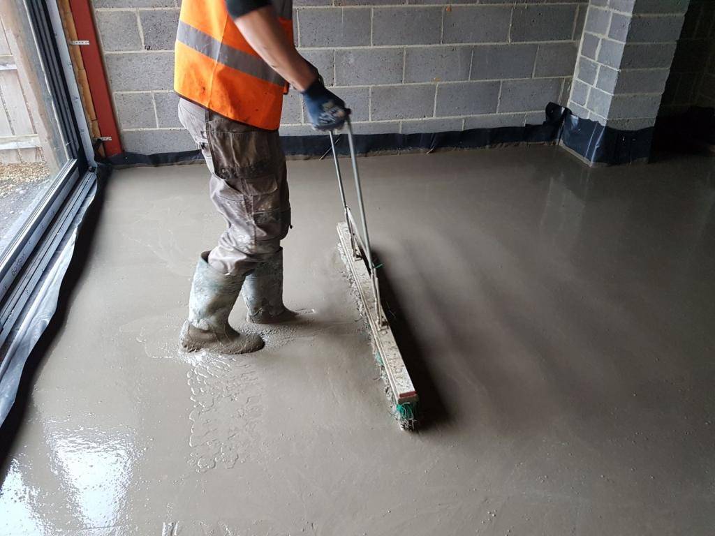 Достаточно распространен спор о том, в какой последовательности делать ремонт, если предстоит заливать полы. Сразу после того как стены выровнены штукатуркой, полы во всех помещениях обрабатываются грунтовкой и подготавливаются к стяжке. Затем монтируются ПВХ-окна и входная дверь, и только потом можно приступать к армированию, установке выравнивающих маяков и демпферной ленты