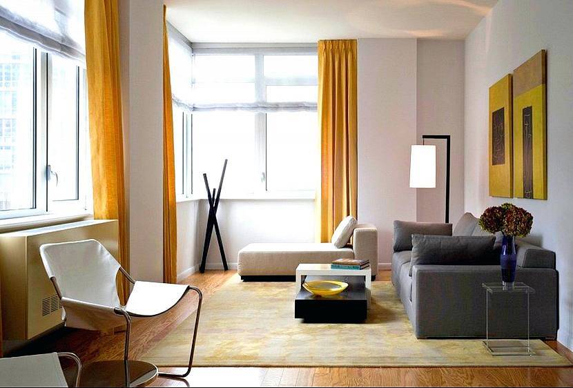 Длинные плотные портьеры – не лучшее решение для крохотных комнат. Попробуйте скомбинировать рулонные, плиссированные модели с тюлем, шторами-нитями, которые можно изящно закрепить или скрестить.