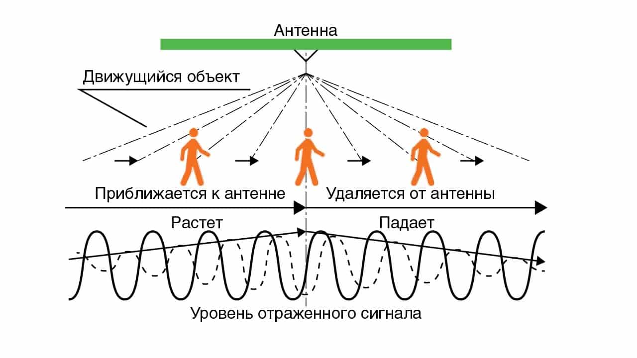 Микроволновые ДД относятся к активным устройствам и работают по принципу радиолокатора. Датчик посылает высокочастотный сигнал и принимает его отражение. Любые изменения в возвращенном сигнале приводят к срабатыванию датчика и включению света. Считается, что микроволновые устройства намного чувствительнее ультразвуковых приборов.