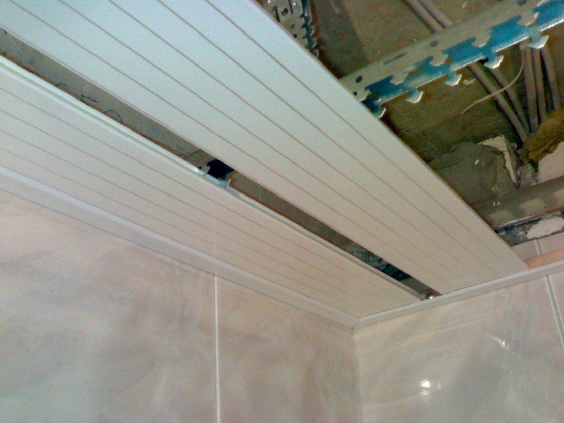 Теперь мы рассмотрим как обшить потолок пластиком. Закрепление пластикового покрытия своими руками осуществляется очень быстро и легко. Сам процесс происходит так же как при установке на стены. Каждая панель имеет паз и шип, которые прочно соединяются в единую конструкцию.