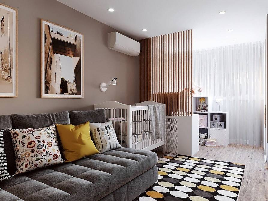 Ещё одна комната, в интерьер которой можно удачно вписать перегородку из деревянных реек — детская. Это и разделение пространства для двух детей, и обозначение функциональных зон в помещении для одного. В первом случае всё стандартно: простенок разделяет участки помещения для каждого малыша.