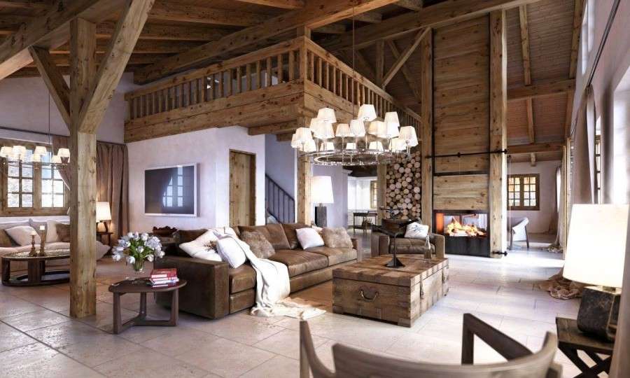 Буквально переводится как «домик пастуха». Как для предыдущих стилей, для шале характерны природные материалы — дерево, камень, хлопок, лён, шерсть. Хорошо будет смотреться в таком интерьере дровяной камин, рядом с которым можно расположить зону отдыха.