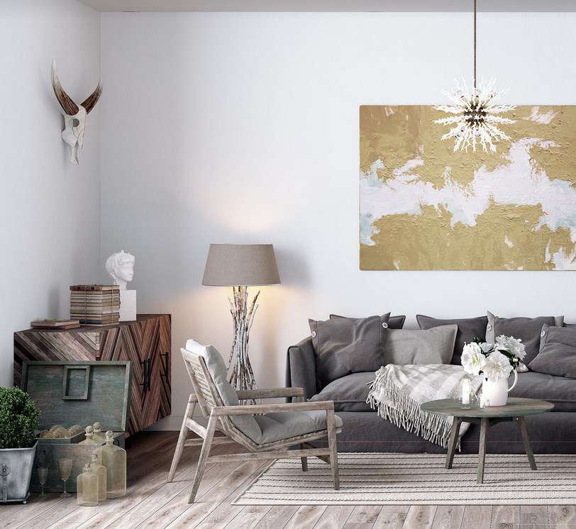 Еще одним популярным выбором в интерьере есть стиль рустик. Он популярен благодаря выраженной необработанности и поверхностей и простотой мебели и декора. Здесь главное, чтобы древесина имела состаренный вид, как будто она долго поддавалась воздействию окружающей среды. Цветовая палитра используется только натуральная – кожа, камень и др. природные материалы должны быть разбавлены серыми ли белыми тонами. Вся изюминка в русистике строиться на сочетании природных фактур. Этот стиль менее брутален и современный среди других.