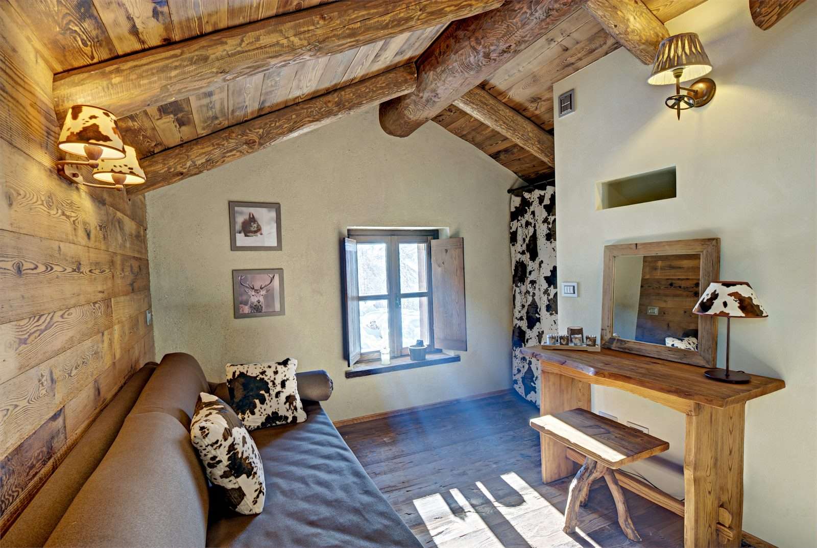 Стиль шале — олицетворение охотничьего домика со шкурками животных, чучелами и другими атрибутами успешного охотника. Интерьер спальни в стиле шале может быть очень простым в смысле мебели и содержать в себе только кровать и тумбочку. Он простой и одновременно очень функциональный.