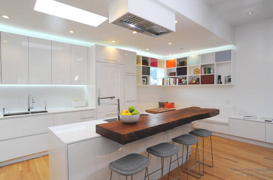 Кухни, столовые – это зоны, где человек получает удовольствие от пищи, отдыха и общения в семейном кругу. Именно здесь, как нигде, хочется наполнить интерьер атмосферой уюта, тепла и гармонии. Дерево – единственный материал, который идеально справиться с поставленной задачей. Причем его можно использовать совершенно по-разному.