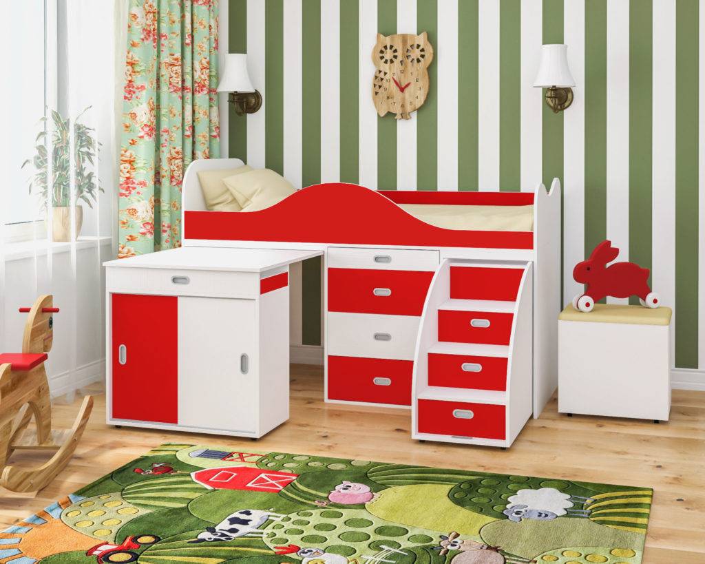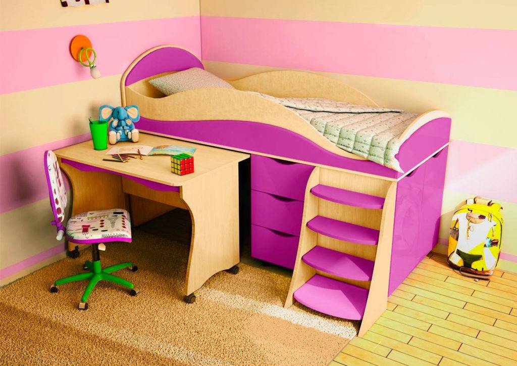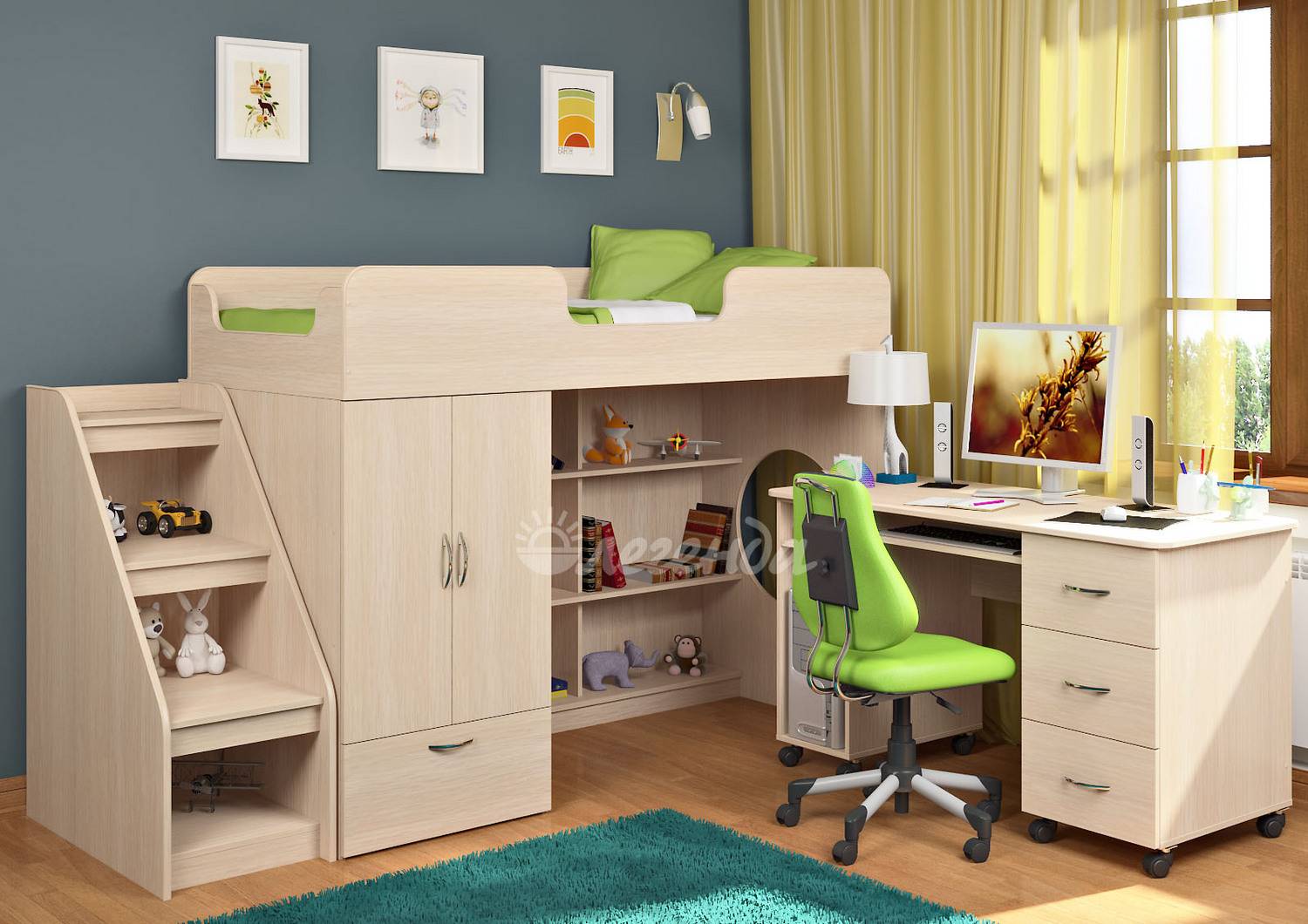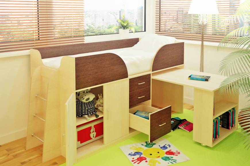 Следующим преимуществом является организация пространства и зонирование. Все мамы знают, как трудно приучить детей к порядку, но с мебельным комплексом это будет сделать гораздо легче. Для каждого рода деятельности тут выделено свое место: для учебы – стол (с полочками и ящиками), для сна и отдыха – ложе на втором ярусе, для хранения вещей – удобные шкафы и комоды.