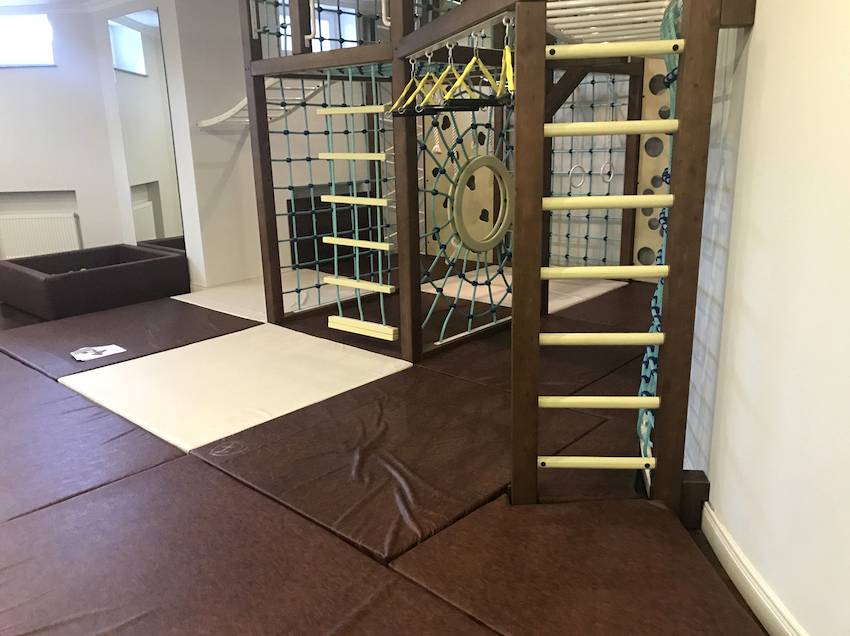 Если комната ребенка имеет зону, где размещены стационарные снаряды (шведская стенка, кольца, канат, турник и т. д.), наличие спортивного коврика обязательно. Удобным вариантом являются ролл-маты. Их не заменит никакой мягкий коврик или модульный пол. Не удержавшись на снарядах, ребенок, чтобы избежать травм, должен опуститься на покрытие достаточной толщины.