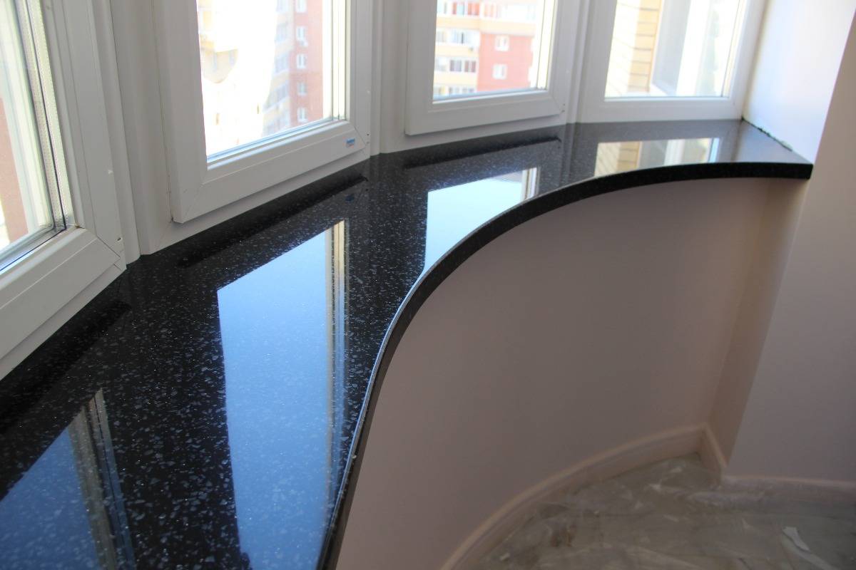 - Наиболее дорогостоящим, но также и красивым материалом для такого стола-подоконника станет натуральный камень, к примеру, обычный гранит, благородный мрамор или же оригинальный оникс. Однако стоимость такого материала довольно высока, он чрезмерно тяжел и холоден.