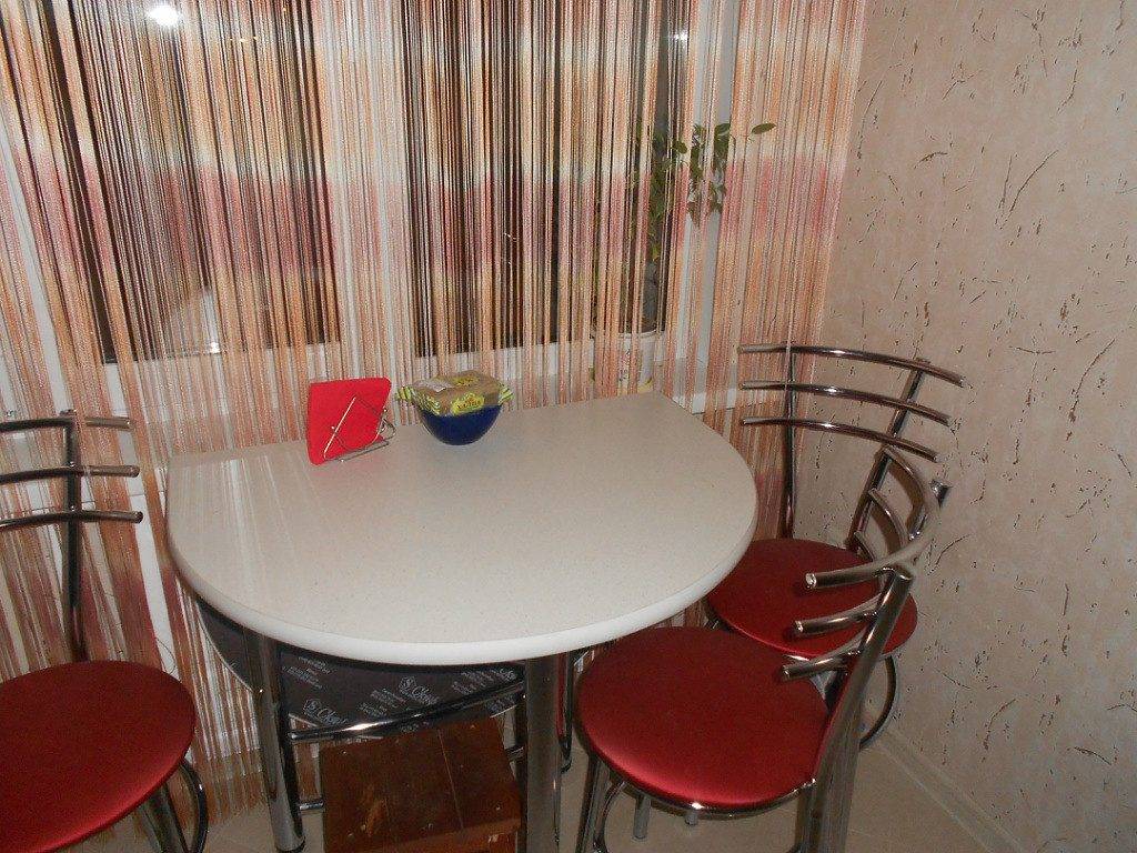 Для двоих идеально подойдет стол не больше 60 см в диаметре. Его удобно размещать на крохотной кухне.